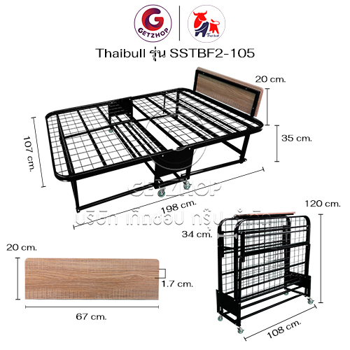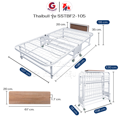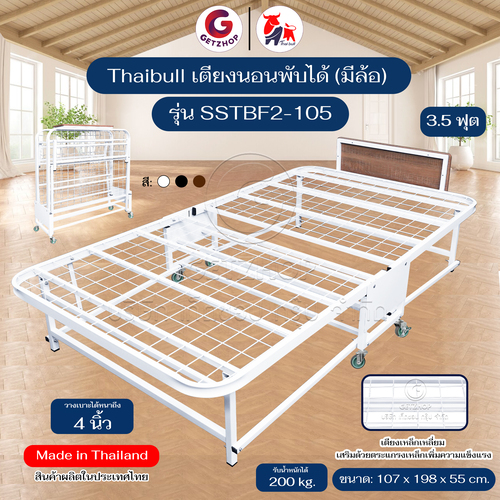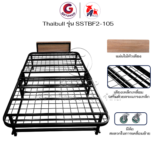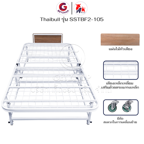 Thaibull steel bed, hotel extra bed, 3.5 foot bed, square steel, foldable, model SSTBF2-105 (with wheels)The Taibul Bed extra bed is made in Thailand and is very popular in 3-5 star hotels. The bed model has wheels for easy movement. The bed structure is made from square steel. Reinforced with good quality steel grid. You can use it with confidence.Can be folded Facilitates use with wheels on the bed legs. To be able to move the bed to the point or area where you want to sleep more easily.