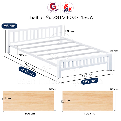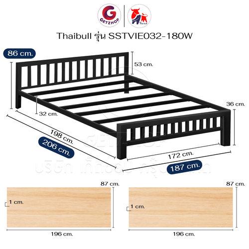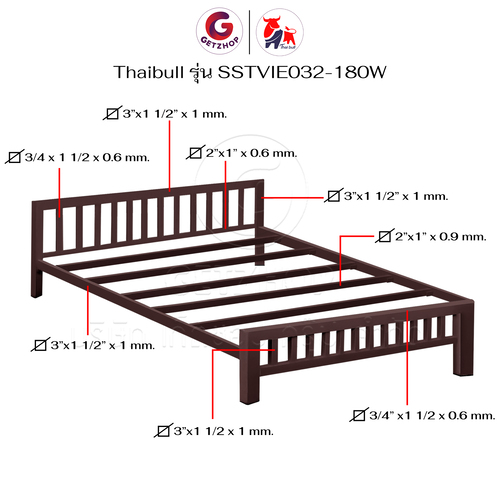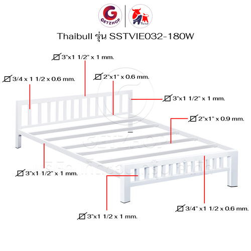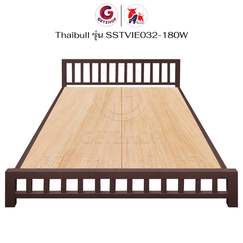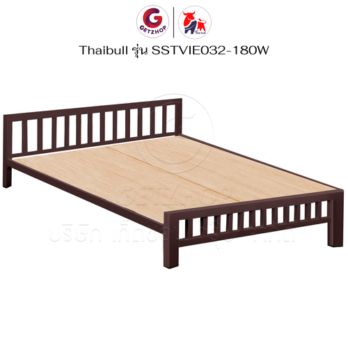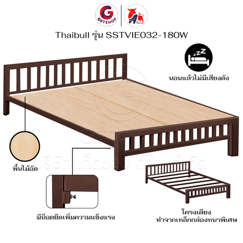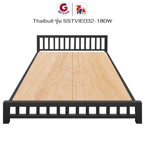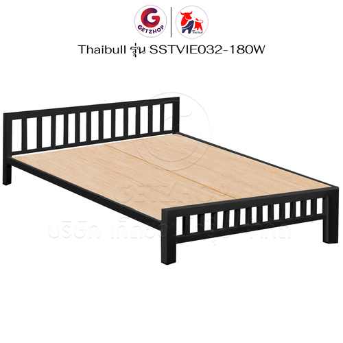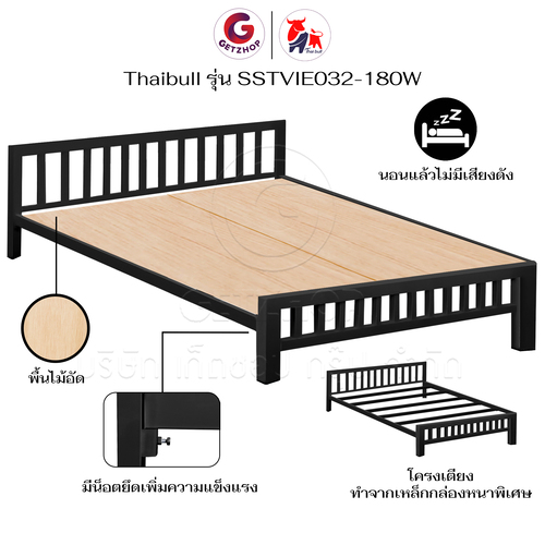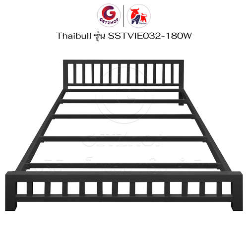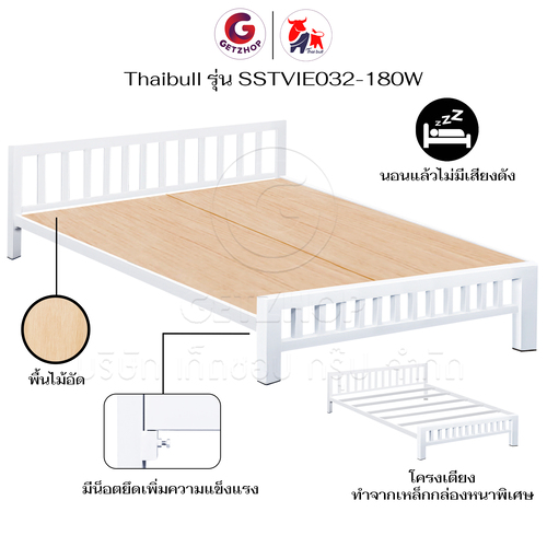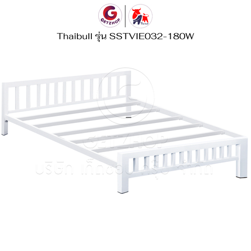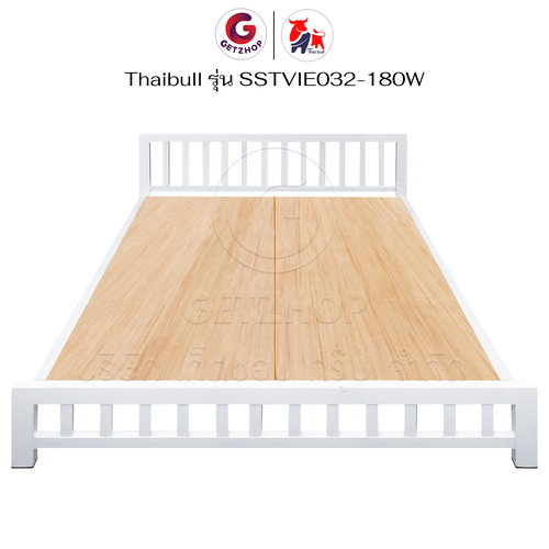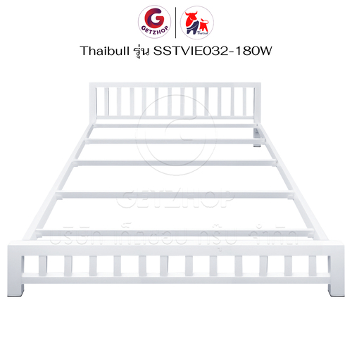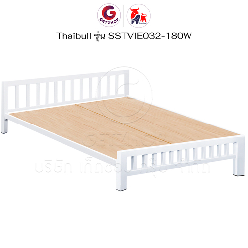 Thaibull เตียงเหล็ก เตียงเหล็กกล่อง 6 ฟุต พร้อมพื้นไม้อัด ขาเหลี่ยม 3 นิ้ว เตียงนอน รุ่น SSTVIE032-180W (ผลิตในไทย)
