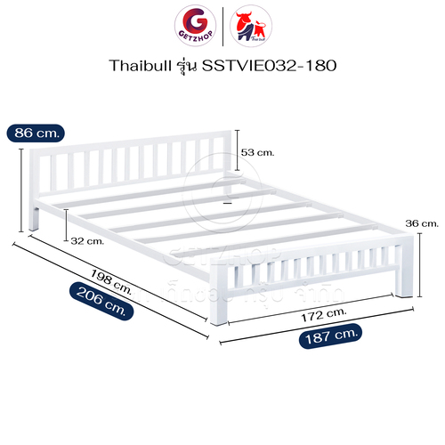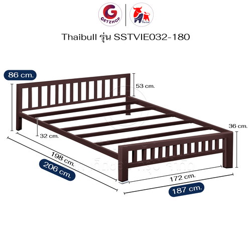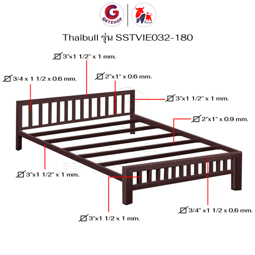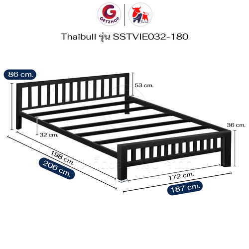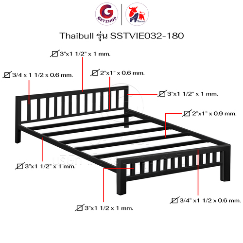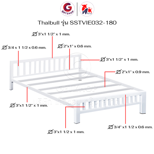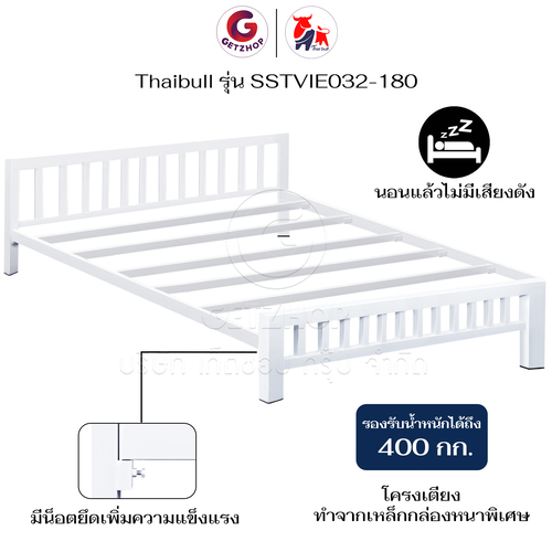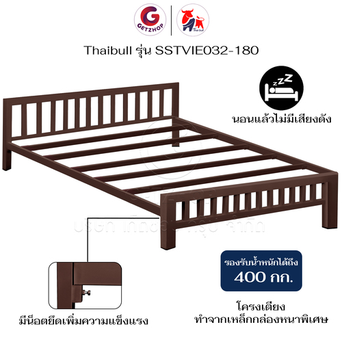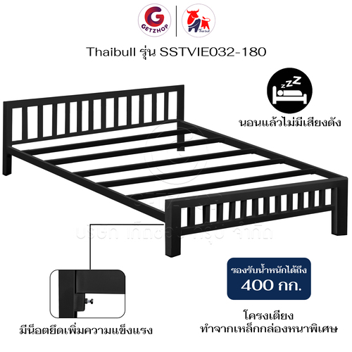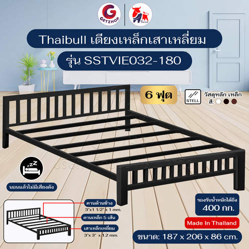Thaibull เตียงเหล็ก เตียงเหล็กกล่อง 6 ฟุต ขาเหลี่ยม 3 นิ้ว เตียงนอน รุ่น SSTVIE032-180 (ผลิตในไทย)