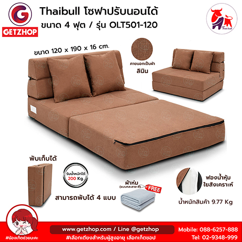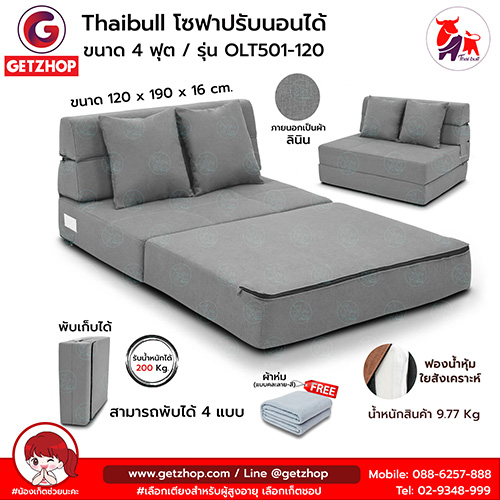 Thaibull เตียงโซฟา โซฟาเบด โซฟาปรับนอน 2 ที่นั่ง Sofabed รุ่น OLT501-120 ขนาด 120*190*16 cm.