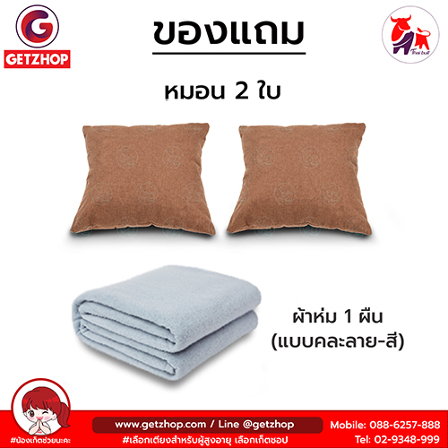 ของแถมในชุด มีหมอน 2 ใบ+ผ้าห่มคละแบบ