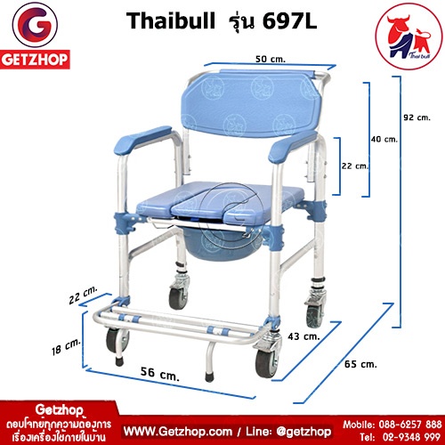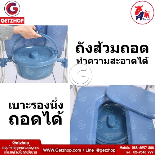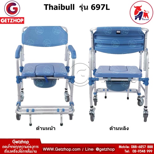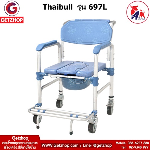 Thaibull เก้าอี้นั่งถ่าย รถเข็นนั่งถ่าย เก้าอี้นั่งอาบน้ำ เก้าอี้ผู้ป่วย รถเข็น ส้วม Portable Movable Chair Toilet 697L