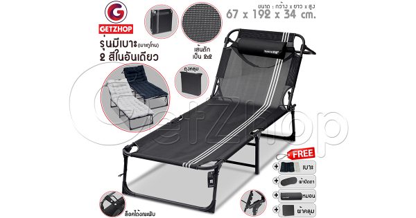XianGou รุ่น XQ-LQ005 เตียงพับได้ เตียงปรับระดับ เตียงปิคนิค เตียงพับ 3 ตอน ผ้าโปร่ง (สีดำ) แถมฟรี! เบาะรองนอน ผ้าคลุม ผ้าปิดตา หมอน
